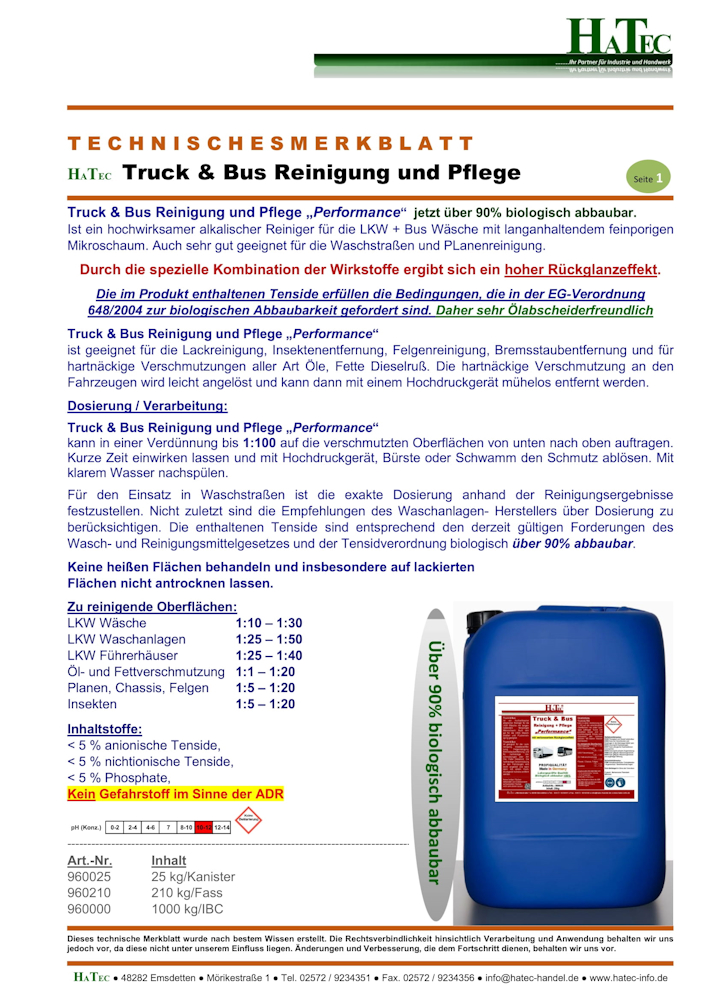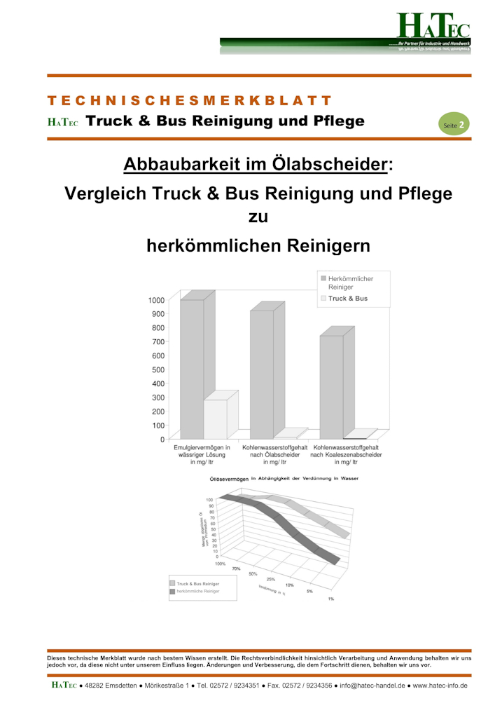 wir haben über Jahre viel LKW-Reiniger getestet und entwickelt um ihnen ein Produkt vorzustellen, dass sie mit einem Ergebnis begeistert und auch die Umwelt nicht groß belastet, da unser Reiniger über 90% biologisch abbaubar uns sehr Ölabscheiderfreundlichist.